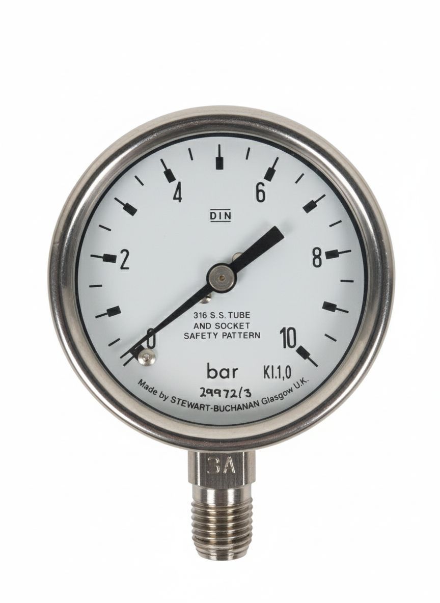 Stewart Buchanan Pressure Gauge 0-10 bar 1/4 NPT Male 63mm