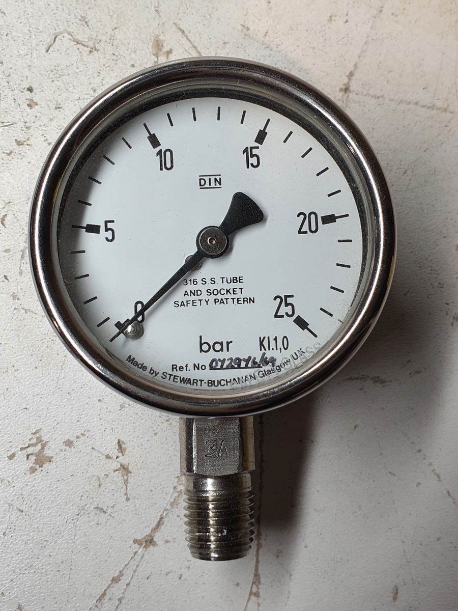 Stewart Buchanan Pressure Gauge 0-25 bar 1/4 NPT 63mm