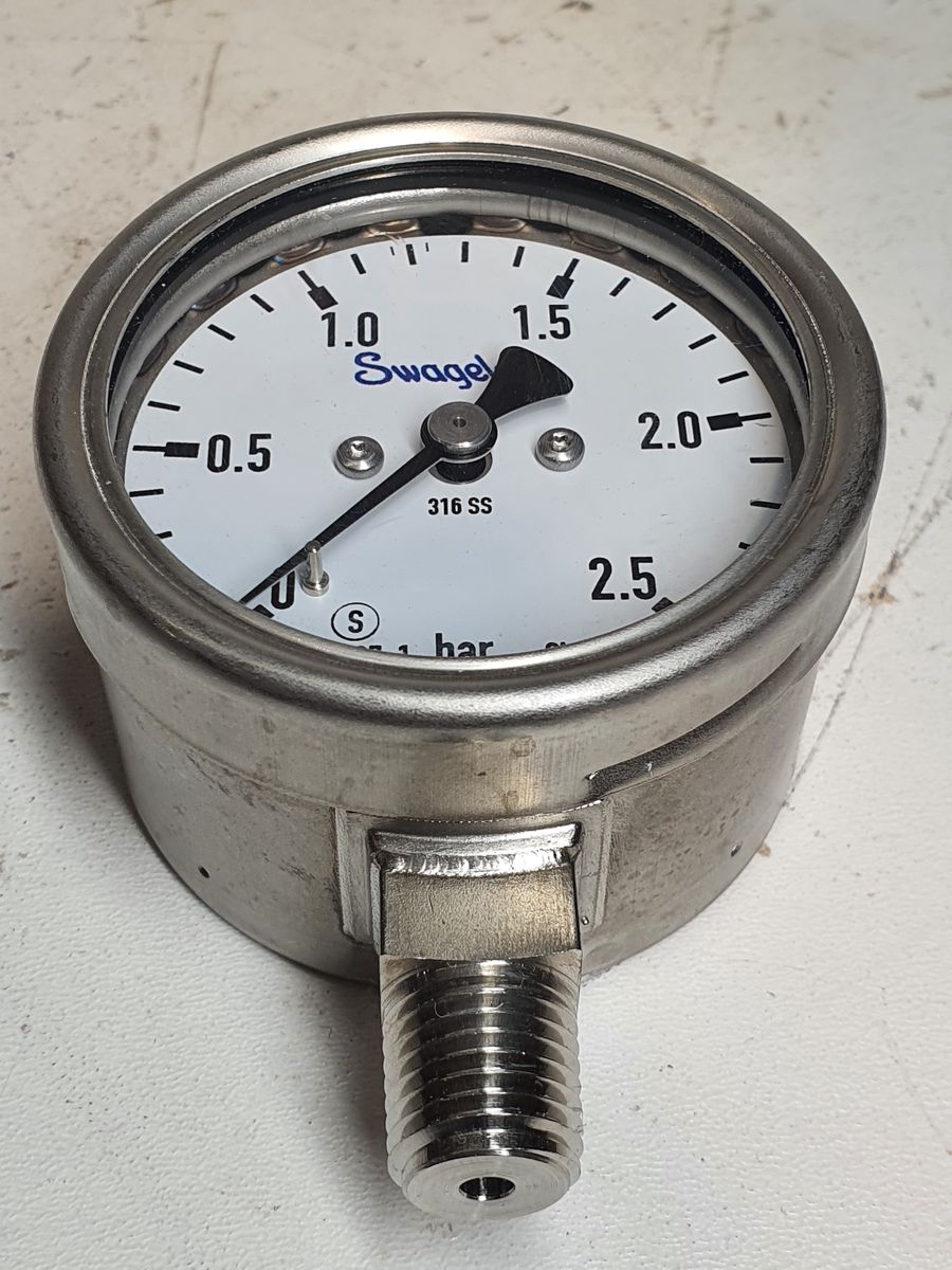Swagelok PGI Pressure Gauge 0-2.5 bar 1/4 NPT Male 63mm