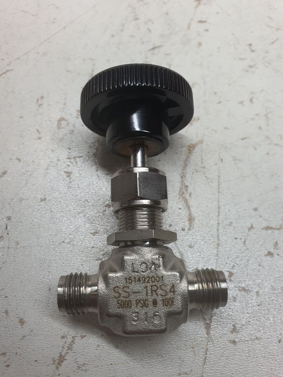 SS-1RS4 — Stainless Steel Integral Bonnet Needle Valve, 0.37 Cv, 1/4 in. Swagelok Tube Fitting, Regulating Stem